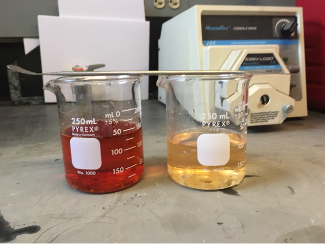 求助! 我将邻二氮菲亚铁指示剂先加入去离子水中,呈现橙红色,然后又加入了过硫酸钾,按照原理应该变蓝色,但是并没有变色,怎么加都不变色,请问应该是哪里出了问题?右边的烧杯是过硫酸钾和硫酸亚铁溶液,可以看出铁离子被氧化了。 |