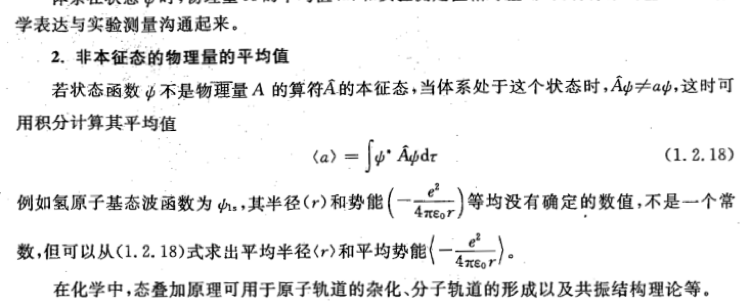 这是周公度先生的结构化学,其中讲到非本征态的物理量的平均值时列出了这个公式。但是他下面举的例子不是很会作用,求大神指导一下怎么用这个公式算氢原子的平均半径和平均势能呢 发自小木虫IOS客户端 |