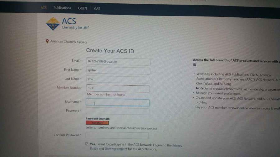 ACS 美国化学学会 有没有好心人给借个账号啊?