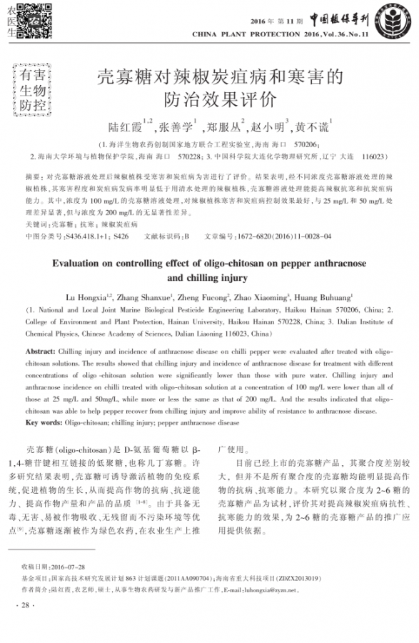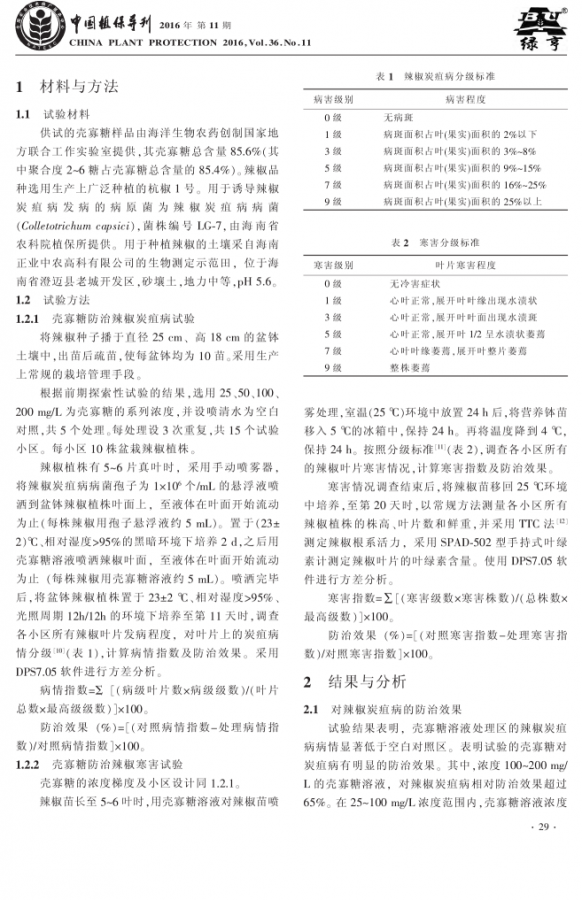 壳寡糖对辣椒炭疽病和寒害的防治效果评价