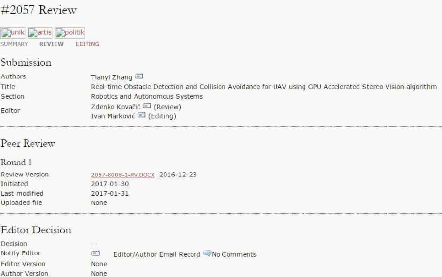 去年十二月投了Automatika,然后状态一直是In Review,今天点进去想写个邮寄催一下编辑的,然后就出现了下图……Peer Review 里面出现了一个1月31号开始,想问一下各位虫子这是已经送审的意思么?那我还要不要发邮件催了? 发自小木虫Android客户端 |