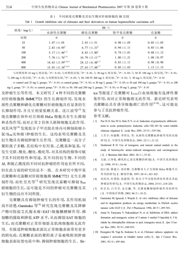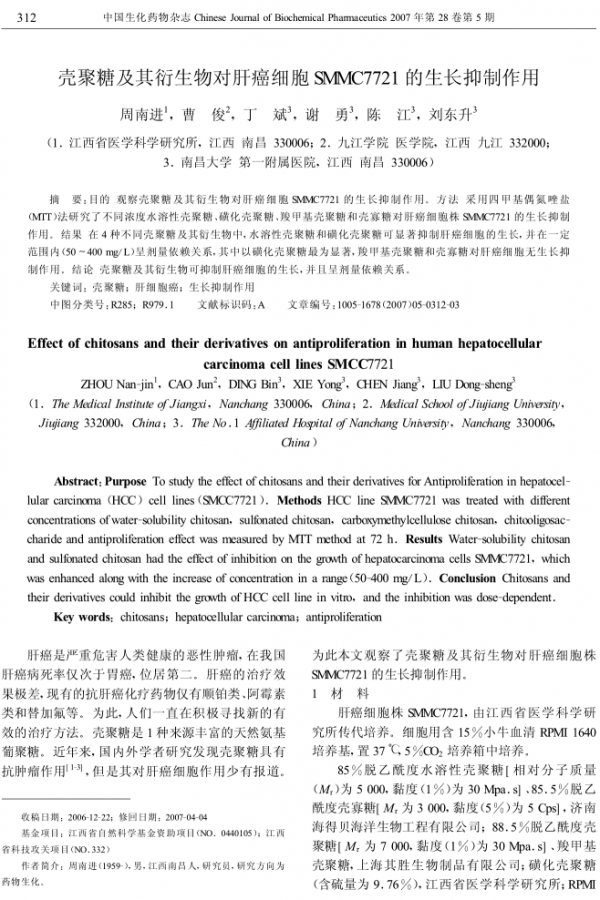 壳聚糖及其衍生物对肝癌细胞SMMC7721的生长抑制作用
