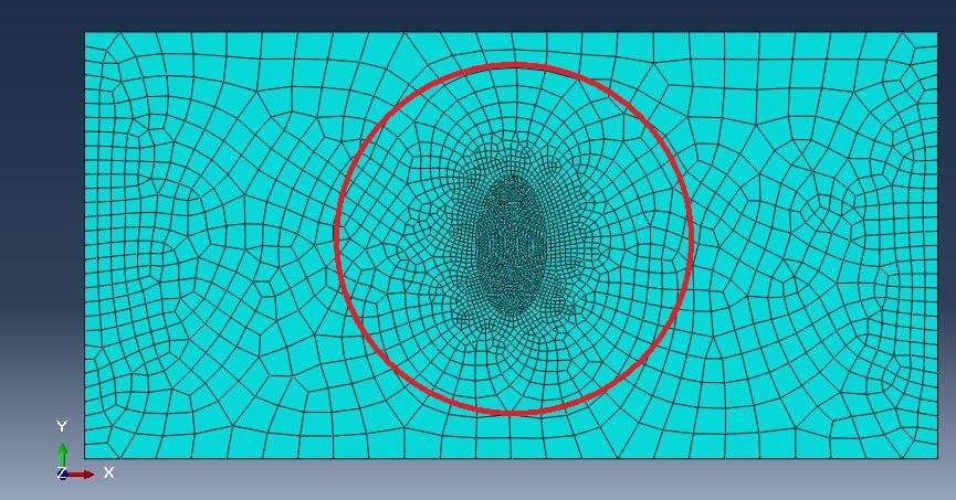 如题,本人近期刚开始接触Abaqus 6.12,按照书上的例题练习了一个椭圆夹杂物在二维平板中受载的问题。算完后,我想把夹杂物附近基体的网格再加密一些,如图中红圈所示的区域内,但是在Mesh菜单中并没有找到类似Ansys里面Refinement的选项。所以想请教各位前辈,Abaqus是否具有在局部加密网格的功能?或者,如果想这样划分网格,在Abaqus中应该怎样操作? meshing改.jpg |
