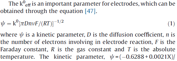 这是一个析氢反应体系里面的,审稿人让我测这个K,但是不清楚这个方程中的v所带表的物理意义是什么? 还有里的电子数n应该怎么理解(是指整个析氢反应过程中的电子转移数,还是指析氢反应方程式中的电子转移数)? 1.png |
