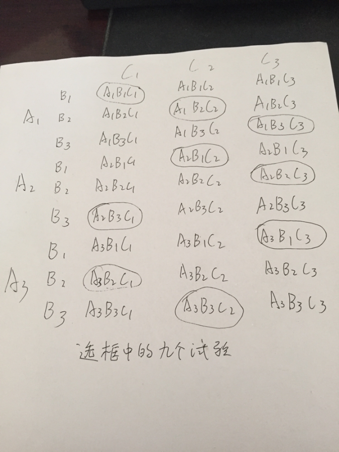 我们实验室准备做三因素三水平的正交试验,我设计的试验: 1 1 1 1 2 3 1 3 2 2 1 2 2 2 1 2 3 3 3 1 3 3 2 2 3 3 1 我同事设计的是: 1 1 2 1 2 1 1 3 3 2 1 1 2 2 3 2 3 2 3 1 3 3 2 2 3 3 1 不知道我和我同事,谁的更合理 |