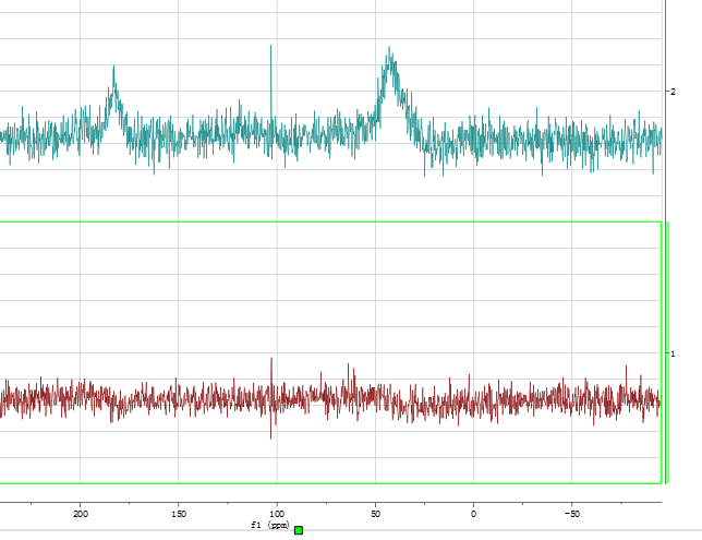 大家好!最近做实验遇到一个实验现象不知道该如何解释。将两个固态样品在同样的条件下测试固态C谱,发现有一个样品的C信号出不来(下图中棕色的谱线),该样品是聚铝使有机酸絮凝下来的沉淀物,C信号出不来,不知道该怎样解释,请大家帮助! 1.png |