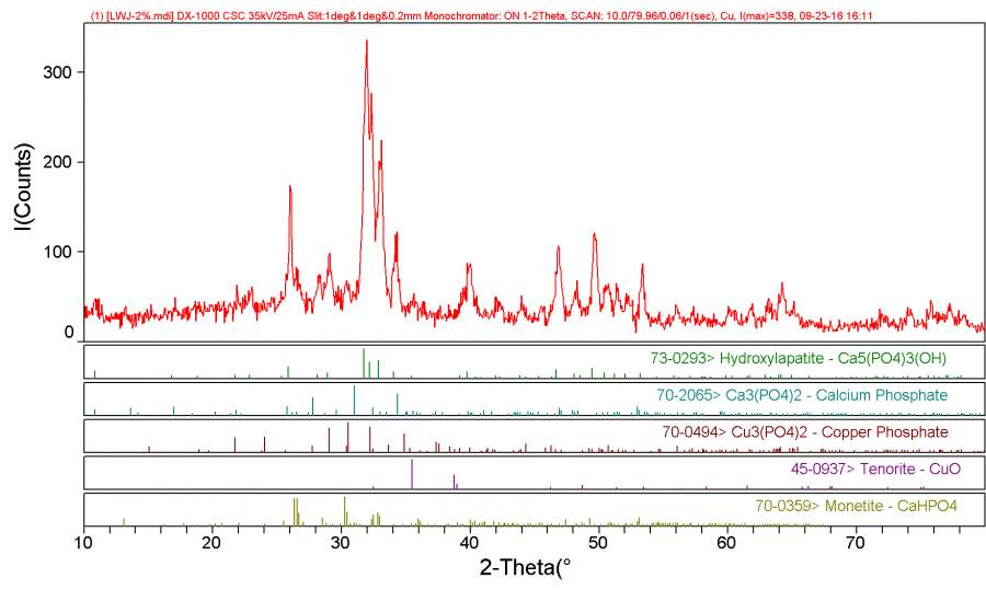 利用共沉淀法制备HA/TCP时加入硝酸铜得到Cu-HA/TCP,其XRD结果求分析