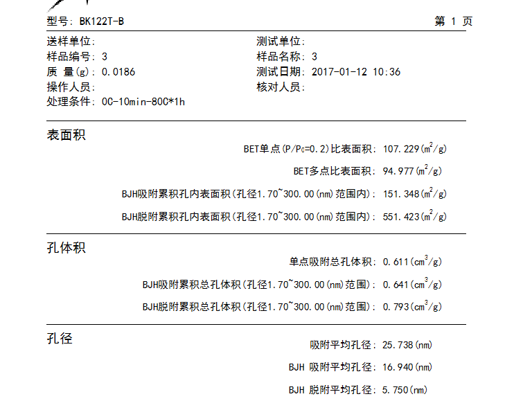 介孔材料测试分析数据比表面积,平均孔径取哪些数值
