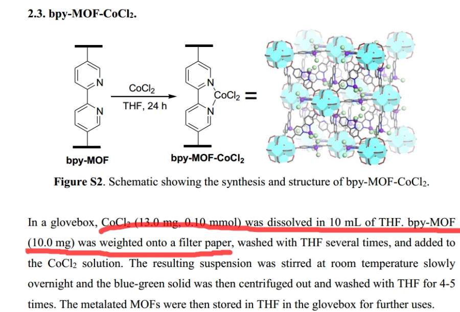 是不是写反了啊,我不清楚bpy-MOF的分子量是多少,但是10mg的bpy-MOF不可能比13mg的CoCl多八倍吧 发自小木虫Android客户端 |