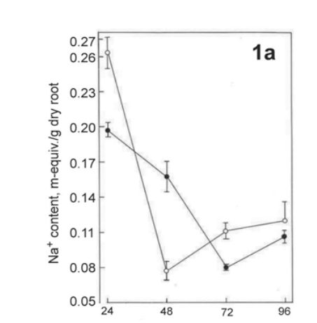Phosphorus deficiency increased the accumulation of Na+ from 33 to 22% in the root of chickpea seedlings at 96 hrs of treatment except a 52% inhibition at 48 hrs of treatment(Fig. 1a). 1111.png |