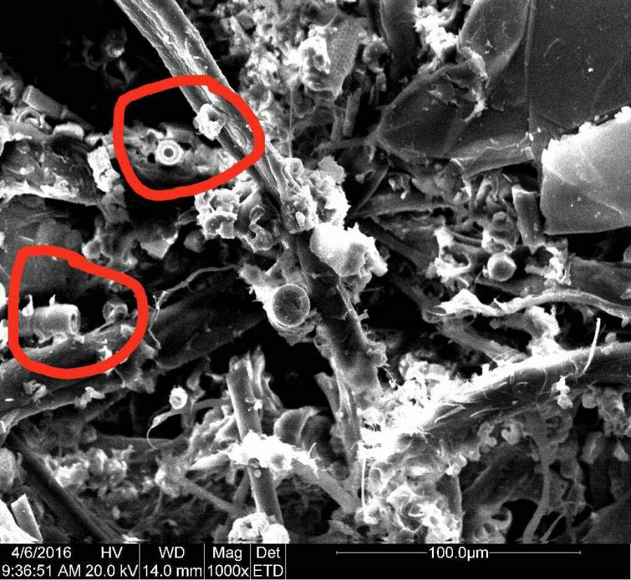 汽车离合器摩擦材料的电镜,请教一下,这种管状结构的是什么材料