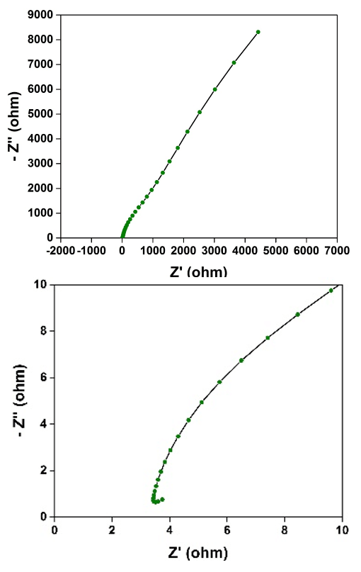 一般是低频要到10的-2赫兹,高频不一定要10的5,你可以试一下5??10的4次或2??10的4次。低频区一般会反应扩散或者感抗等情况,所以一般要设到10-2赫兹 发自小木虫IOS客户端 |