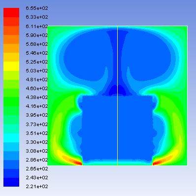 壁面上下左右温度相同,均为400K,模拟内部冰块融化过程。 静态温度云图的模拟结果如下图,为什么温度最高的地方,在冰块周围,在最下面? 不是冷空气下沉吗,应该最高温度在上面啊? 0.8S.png 1s.jpg |