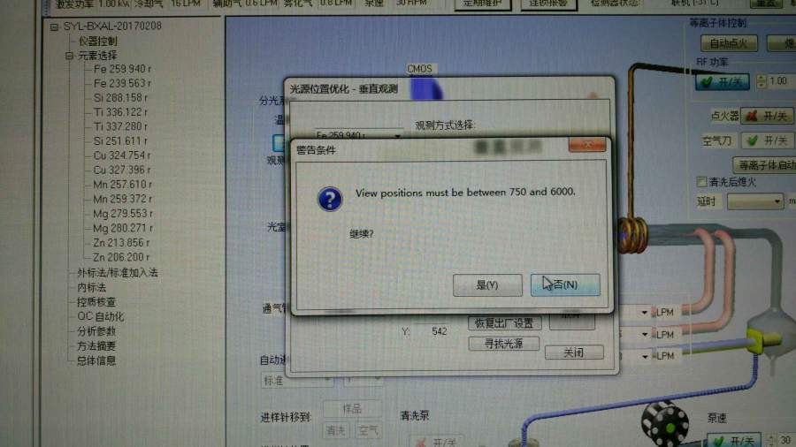 JY - ICP 使用过程中出现观测位置必须在750到6000,全谱扫不出来