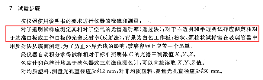 请教 标准HG/T 3862-2006 塑料黄色指数试验方法 中的 “透过法”测试操作