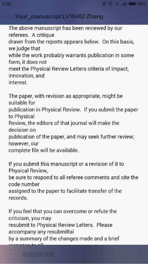 确实是拒稿,审稿意见肯定有好有坏。编辑拒稿,让你修改之后投别的PR系列杂志,或者,你觉得你可以反驳那个坏意见的审稿人,你可以重投PRLPRL 发自小木虫IOS客户端 |