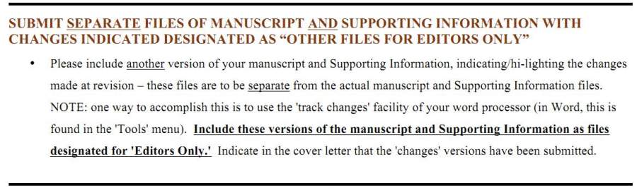 各位老师, 好! 之前没有在ACS上投过文章,想请教下organic letters修改稿上传时,编辑发的修改要求中有一句话: 是否只需要上传修改后的manuscript和SI(修改过的地方高亮显示)? ps: these files are to be separate from the actual manuscript and SI files, 指的是什么意思? |