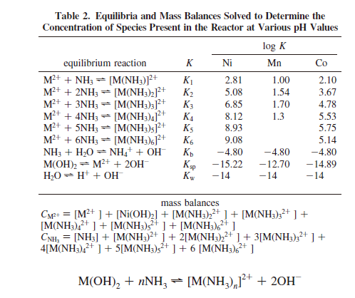 | 共沉淀法制备镍钴锰酸锂三元正极材料中,要加入氢氧化钠和氨水,调节pH,很多文章讲氨水作螯合剂。螯合剂是会和反应物生成什么物质还是什么? |