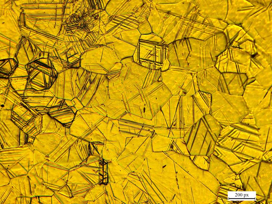 各位大神,小弟最近在做纯钛的表面化学抛光,抛光液成分:10ml HF,10ml HNO3,30ml 乳酸,将表面磨至2000#,在上述溶液中浸泡并搅拌一分半,肉眼观察表面不平整,不知是坑还是晶粒,直接吹干照金相,出来的结果如图,请问这是好的效果么?浸泡过程中并没有出现镜面效果,上面的那些黑道道又是什么呢?纯钛为3mm厚板,状态不太清楚,感觉是退火态,还望大神们指教![]() ![]() 100-1.jpg |
