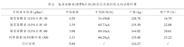 氨基寡糖素(0.5%水剂)对黄瓜根结线虫的防治实验