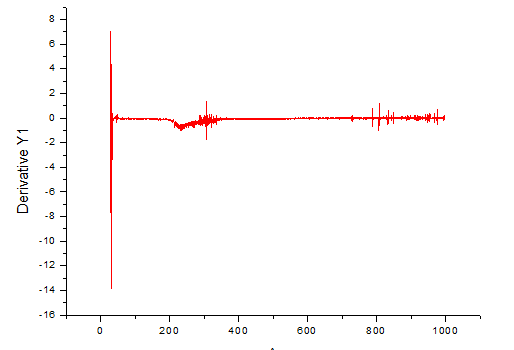 第一次做热重曲线,给的数据横坐标为温度,纵坐标为失重率,很顺利做出了TG曲线,于是上网搜索如果做DTG曲线,按照网上的方法做微一阶分,analysis- Mathematics- open dialogue- 点击plot derivative curve选项,为啥出来是下面这种图 ,很郁闷,又试了很多方法还是出不来,求大神解答 TG.png 一阶微分后.png 正确的TG-DTG图.png |