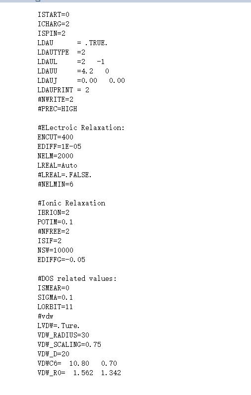 vasp做表面优化,vasp不进行计算,输出结果都为0 已有1人参与