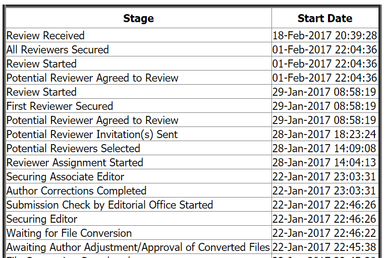 当时只看到First reviewer secured,没有看到second reviewer就觉得只有一个审稿人,但是现在review rcvd之后这么久依然没有反应,并且在Current Stage中仍然显示All Reviewers Secured,是不是有两个审稿人啊。 状态.PNG |