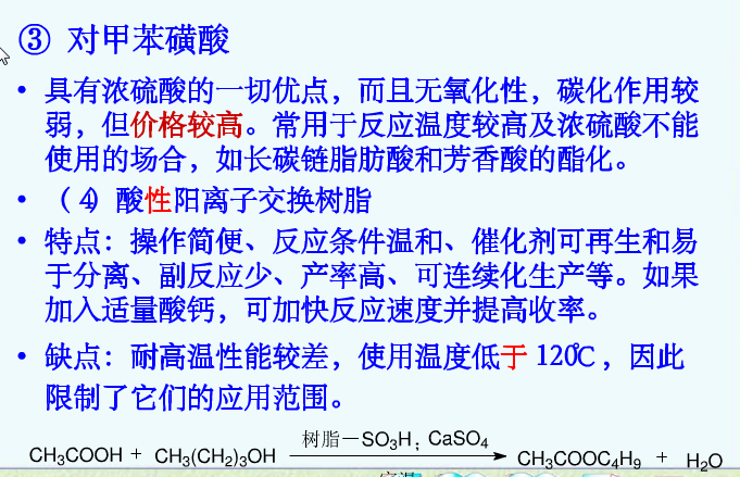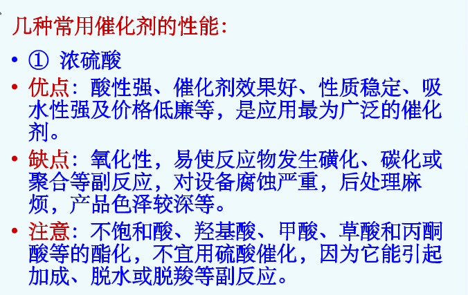 先谢谢你,这是醇酸缩合生成酯的反应,还有没有市场上较普遍的酸?用量怎样?