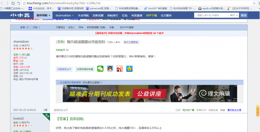 求市面各大膜公司超滤膜膜丝性能已有1人参与