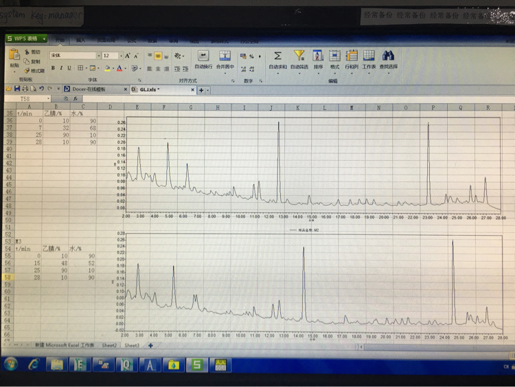 最近在做一个大复方的指纹图谱,好多小峰分不开,一头雾水啊。 目前的条件:watersHSS T3柱,2.1*100mm,流速0.3,柱温30,下面的图是几种流动相比例。请有经验的亲们指导一下,流动相比例怎么调,谢谢了! 发自小木虫IOS客户端 |