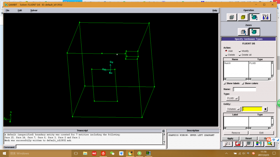 我刚开始学习fluent,想模拟一个有空调的房间,房间一面墙上有一个窗户,想得到窗户中心点温度上升3度的时间,几何模型已建好,但是不知道空调送风口、回风口、窗户和内部空气的边界条件怎么设置,求大神能详细说明下 JB[]5QLAYO(]~4$]HELM~2O.png |