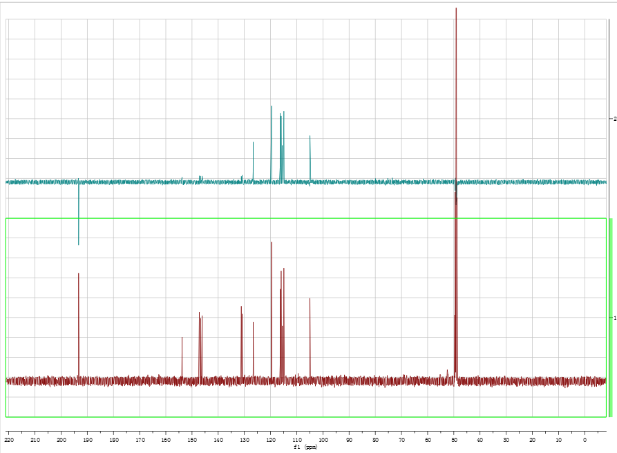 | 请问各位大神,在碳谱上193有一个碳信号,但是DEPT135上对应的碳信号是朝下的,两个碳信号都很明显,什么情况下的碳是这样的呢? |