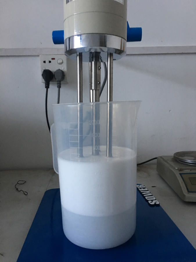 希望将二甲基硅油1000CSt乳化为25%固含量乳液。使用0-12000rpm圆孔乳化机。 步骤: 1.先将1000CSt二甲基硅油400克+40克TMN-6放入料杯,然后将工作头浸入液体中,此时刚好液体浸没整个工作头; 2.转速调节到8000rpm下10分钟,液体呈均匀乳白状,慢慢加入300克水,继续乳化10分钟,此时有气泡,液体高度上升1/3左右,加入消泡剂60克(1:10的G510兑水,对800rpm分散机搅拌30%硅油乳液时产生的泡泡很有效)无明显效果; 3.乳化过程中慢慢加入550克水,5分钟后气泡增加,液面高度到顶(约2400ml位置,料杯2000ml刻度最大,2000ml距离顶部约400ml),停止乳化,等待泡泡消失。 求论坛里的大神指点迷津,乳化步骤是否不对、如何消除气泡,谢谢哦~~ 发自小木虫IOS客户端 |