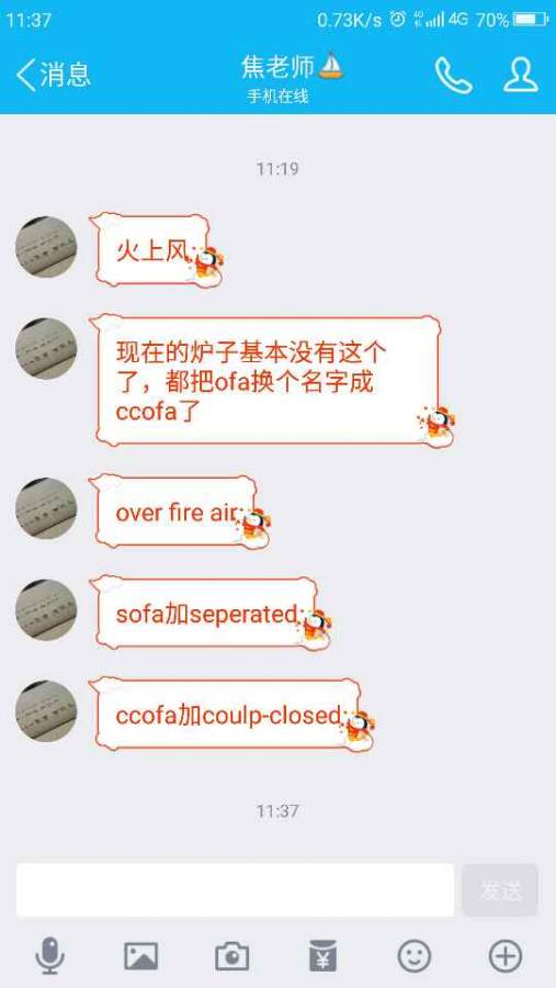 我来解释一下把,ofa是燃尽风,sofa是分离燃尽风。这种叫法一般存在于低NOX分级燃烧系统的锅炉中。油层一般值油枪辅助风室,在点火起炉阶段或者低负荷下为了稳定燃烧,投入燃油辅助燃烧。高负荷时不需要稳燃,就不投燃油了,这个风口就是通二次风了。 发自小木虫Android客户端 |
