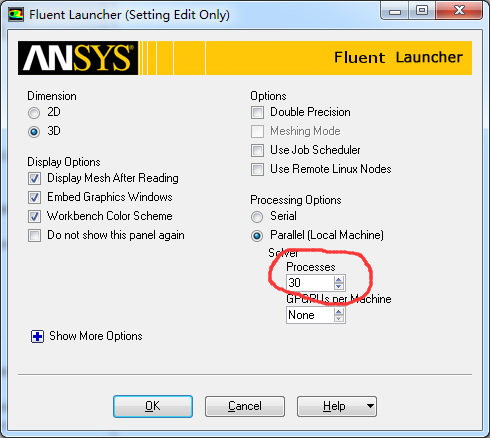 一共用fluent并行计算了两次,第一次计算用的普通电脑,开了6个线程;第二次用服务器去算的同样的模型,开了30个线程,设置与第一次都一样的