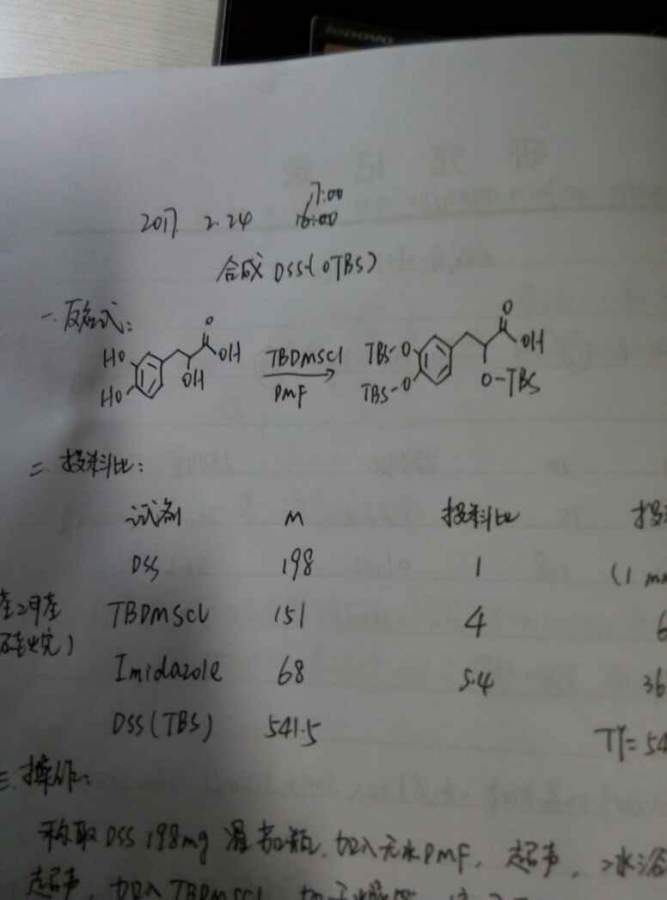 本人正在做丹参素中羧基接氨基酸的反应,由于丹参素中有三个羟基,极性过大,无法走柱子纯化,试图做羟基的TBDMSCl保护,但是丹参素在DMF中不溶(除了水外,貌似啥也不溶),反应一天后原料点还在,而且三个羟基的保护没有选择性,问如何加速反应,可以加DMAP和油浴加热吗? @lifeliuyan 发自小木虫Android客户端 |