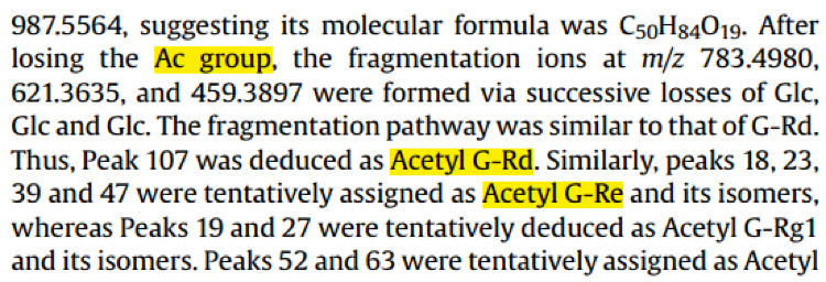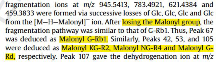 做人参皂苷的质谱分析,和文献对照,有的人参皂苷是丙二酰基人参皂苷,有的是乙酰基人参皂苷。我不知道这两种人参皂苷有什么区别,乙酰基是丙二酰基皂苷合成的中间产物嘛?还是另一种皂苷。。它们在结构上有啥区别呢? @lifeliuyan 发自小木虫IOS客户端 |