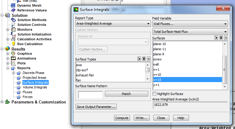 用fluent后处理中的面积分计算出的热流密度q和对流传热系数h,如下图。那么q/h得到的是温差吗?为什么相除后得到的结果与实际不符,求大神指教啊。如果这种计算不正确的话,请问怎么样计算某个流体截面的对流换热系数啊,跪求解答啊![]() 热流密度.PNG 传热系数.PNG |