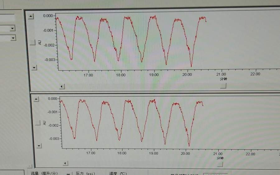 本人新进研究生一名,实验用到高效液相色谱,但是在检测前,需要先监视器扫描基线,基线范围稳定在10的-3次方范围才可以进样检测,但是最近基线范围总是很宽,在-2次方内,达不到要求,这是什么问题,需要怎么改善 基线.jpg |