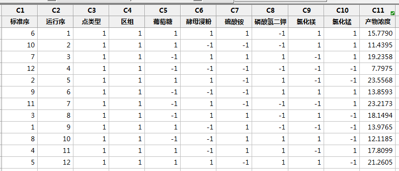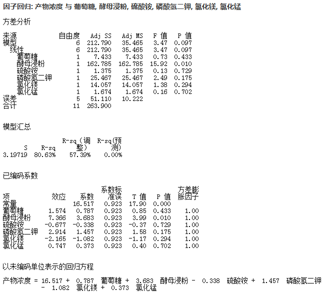 目前想做培养基成分的响应面优化,选择了葡萄糖, 酵母浸粉, 硫酸铵, 磷酸氢二钾, 氯化镁, 氯化锰 6个因素做PB实验,结果用Minitab分析,只有酵母浸粉有显著差异。请问接下来该怎么确定其它1-2个用于做响应面的因子? 1.png 2.png |