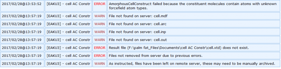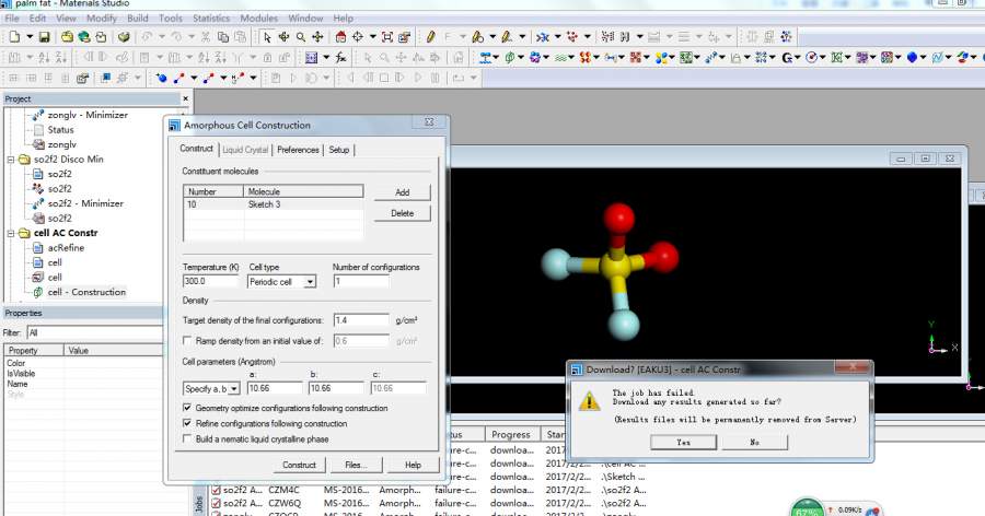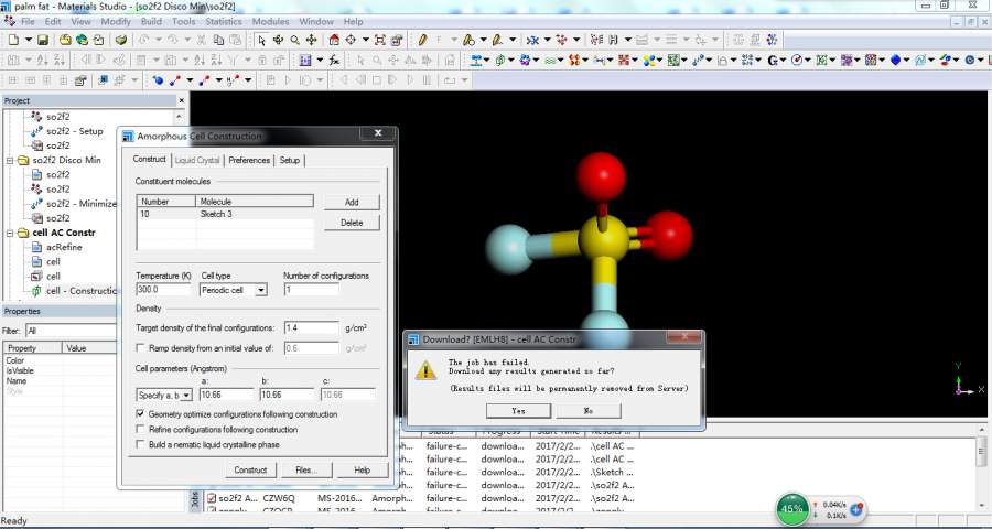 本人新手,在用material sdutio7.0 来做分子动力学模拟时,遇到现有的compass等相关力场中没有我研究的气体SO2F2的相关参数怎么办? 用discover-smartminimer最小化后,利用AmorphousCell建立无定型晶包时构建失败如图所示,请高手指点一二,谢谢! I{BC{J}ABO]HVA{4$ARGPIF.jpg 出错信息.png |