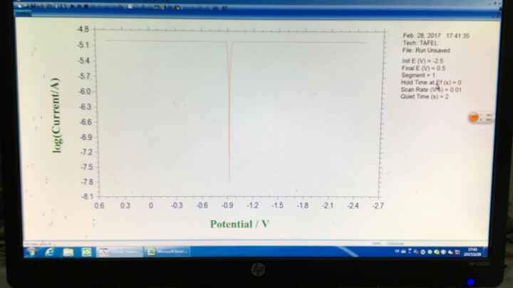 做镁合金的极化曲线,腐蚀液SBF。做出来这样一个权曲线是什么原因,由于实验条件有限,装置非正常的,看图,各位大神这是什么原因呢?