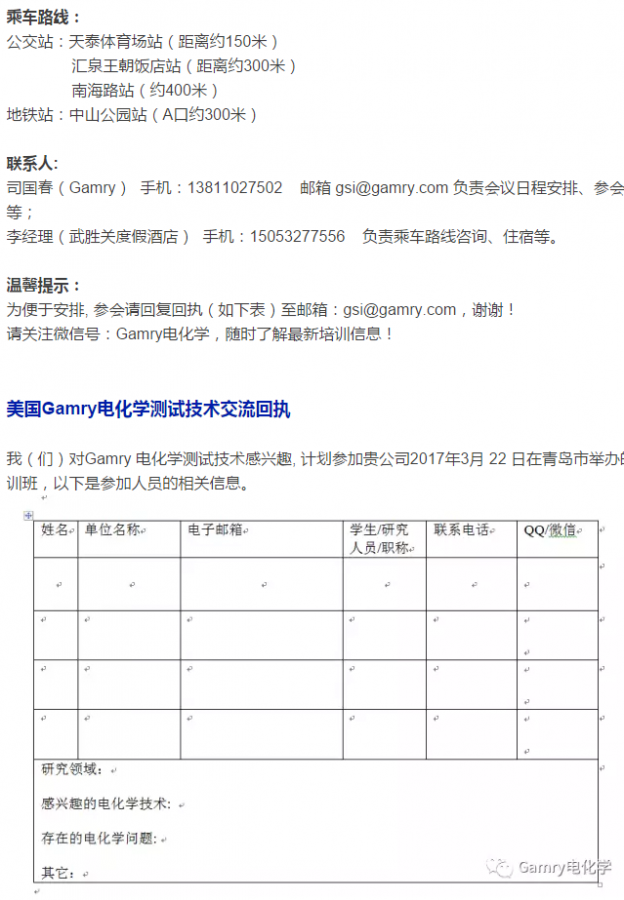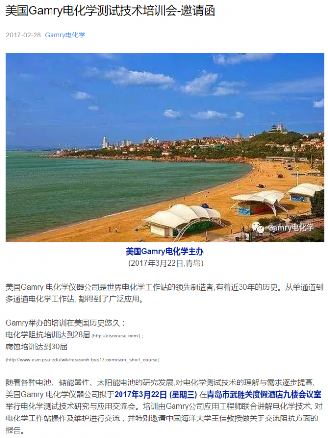 [2017-03-22]美国gamry电化学仪器公司将在青岛举办现场培训会!!!