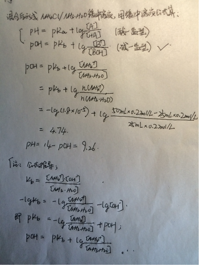 计算反应后NH4Cl和NH3·H2O得量,用公示就可以得到结果 发自小木虫Android客户端 |