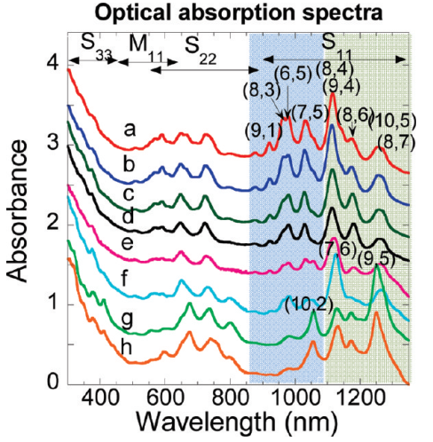 关于碳纳米管的分离中,需要对单一手性或者 金属型和半导体型的碳纳米管做光谱图。小弟不明白这图中的E11,E12,S11,S12,等等这些都代表什么,有大神可以科普一下吗。。 `3CA34@SGS%RZ%JBBJ866NL.png OW)@~SI7@~2Z%(W}U{HDVO9.png |