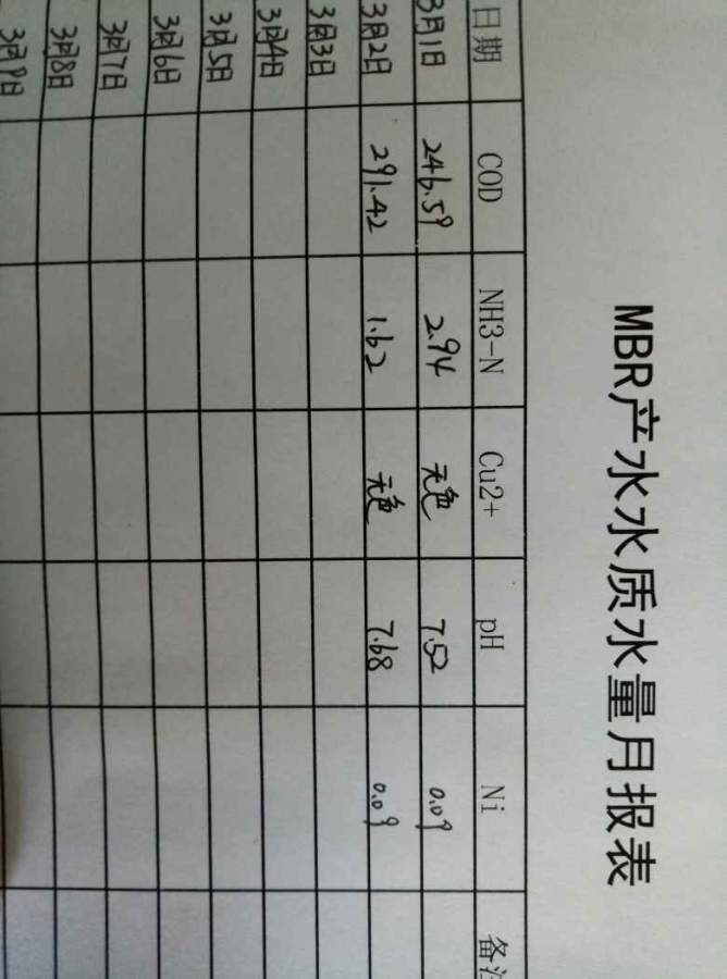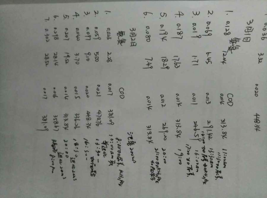 污水厂前段主要控制重金属和pH(来水有电子厂的油墨废水,含镍废水和酸性废水),进水水质和出水水质有图。后续设计生化池4个串联,后面接膜池,达标后直接排水。目前生化池进水pH控制在9-10,进膜池pH稳定在7.2-7.5。年前受冲击生化瘫痪,目前重新调试,投加生活污水厂污泥后污泥量在8000+,再投加营养盐(面粉、尿素和磷酸二氢钾)。除了氨氮有所下降,cod和总磷几乎没啥变化,闹心!!!后期调试都不知怎么下手了 @fzm1108 @caominone @小_包子 @xiaofan700 @TXJ2013 发自小木虫Android客户端 |