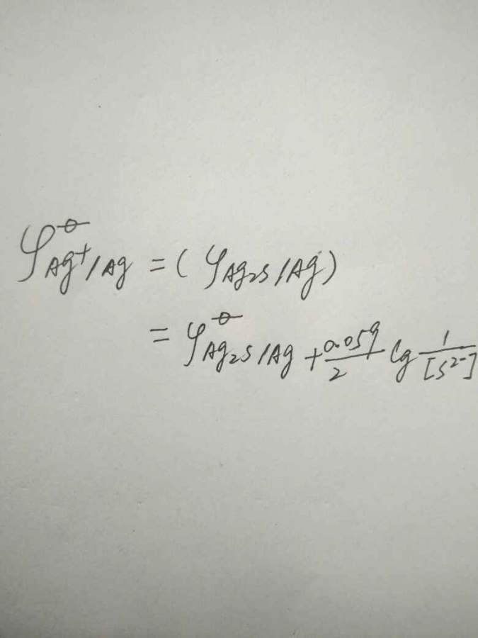 如图,Ag2S/Ag电对和Ag+/Ag电对实质上相同,所以非标准态但是同一情况下Ag2S和Ag+电极电势相同对吧,但是为什么标准状态的Ag2S/Ag电极电势就等于非标准状态下的Ag+/Ag的电极电势?(图一题目中括号内)为什么要这样写,我感觉有点被绕迷糊了…那么可不可以按照图二我“类比”的这样? 请求高手指点!谢谢!! @jiagle @fds329 发自小木虫Android客户端 |