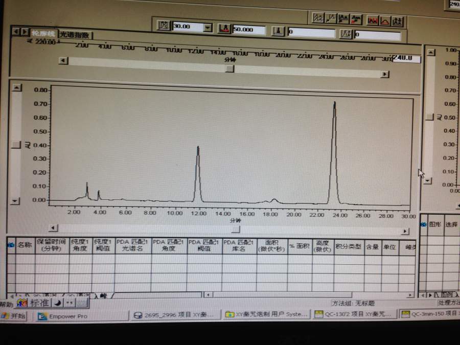 今天做液相的时候发现走的谱图和以前不一样,在2——4min出来一个像溶剂峰一样的,后没没有出峰,个人排除了装盘卡主没进样的情况。而且我把昨天进过了的样品在进也是没有出峰。个人感觉就是进样针坏了,但是要怎么修啊,自己能修好吗? 昨天进样一切都是好的。今天来了冲了柱子压力也是好的。液相是watwers2695.求大神指点一下,要怎么处理。 IMG_5361.JPG IMG_5362.JPG |