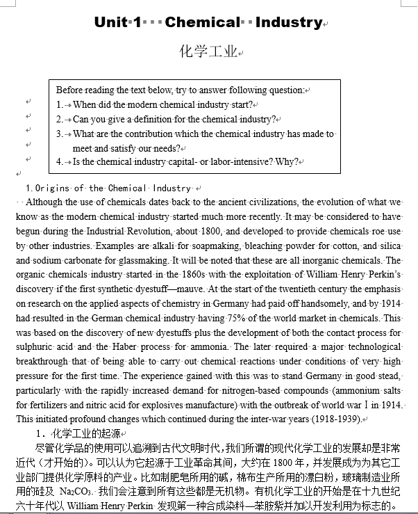 《化学工程与工艺专业英语》课文翻译