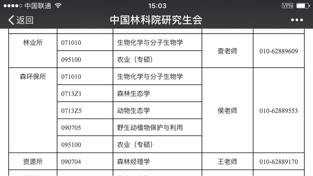 http://yjs.caf.ac.cn/Item/3195.aspx 2017中国林科院硕士调剂信息 其中野保专业需要有动物学背景,分数过国家线。 具体可将调剂信息(第一志愿学校,专业,成绩,本科院校,所学专业,课程,简历等)发送至cranenw@caf.ac.cn或致电侯老师。 恕回帖慢回 发自小木虫IOS客户端 |